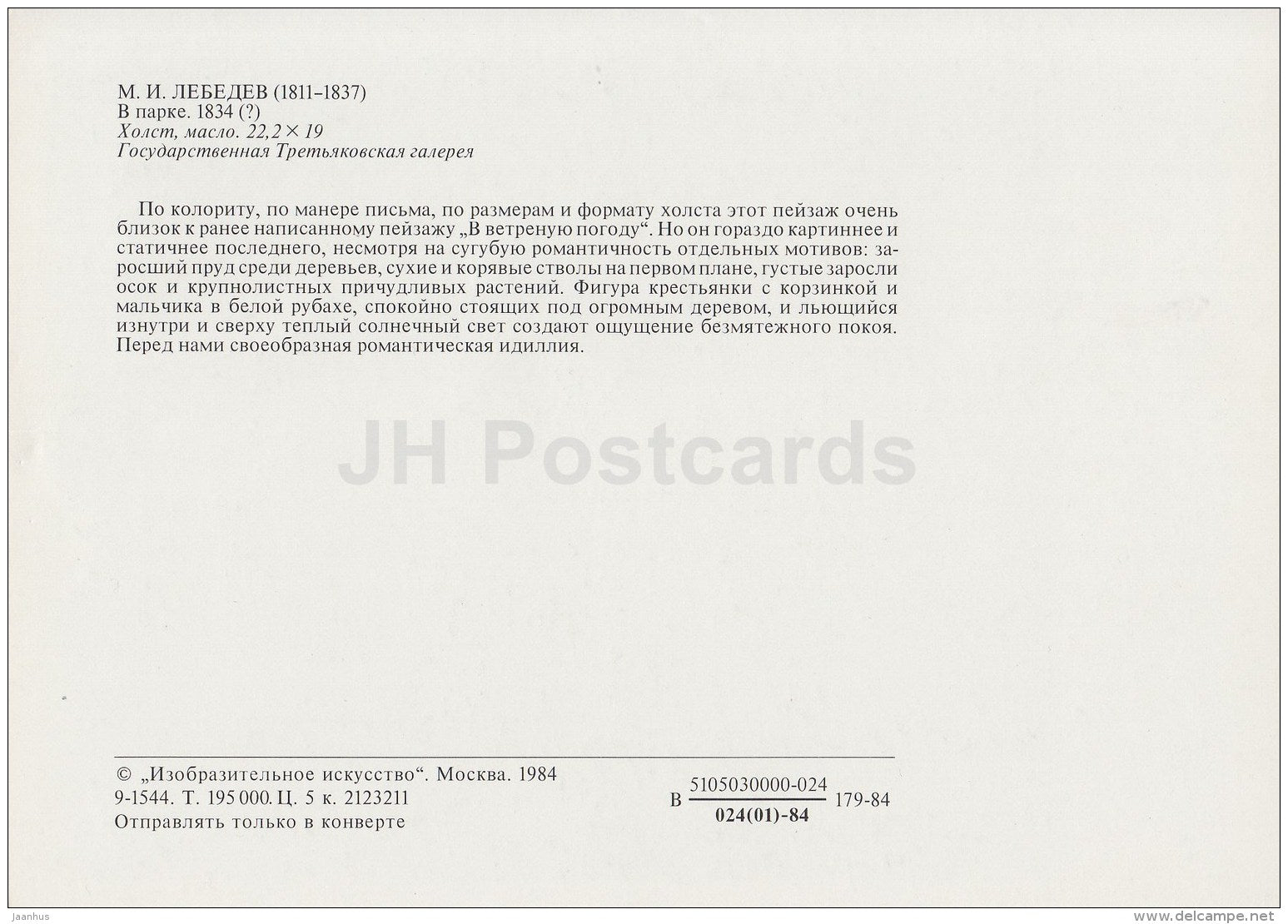 tableau de M. Lebedev - Dans le parc, 1834 - Art russe - 1984 - Russie URSS - inutilisé