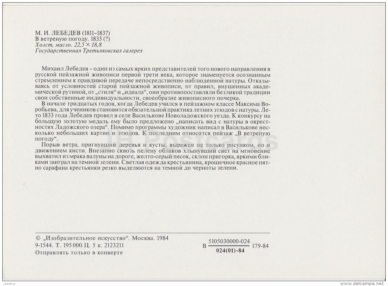 peinture de M. Lebedev - Windy Day, 1833 - Art russe - 1984 - Russie URSS - inutilisé