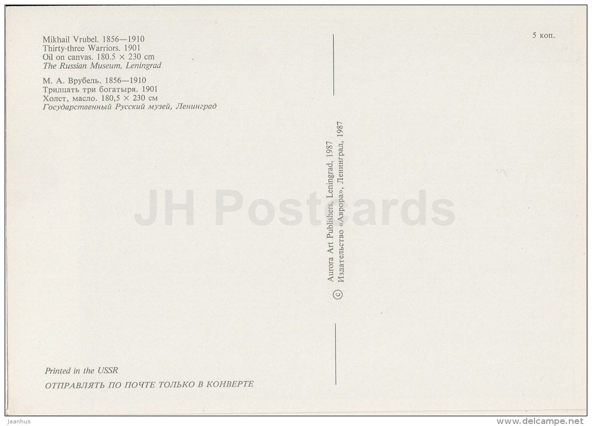 peinture de M. Vrubel - 33 Guerriers, 1901 - Conte de fées - Art russe - 1987 - Russie URSS - inutilisé