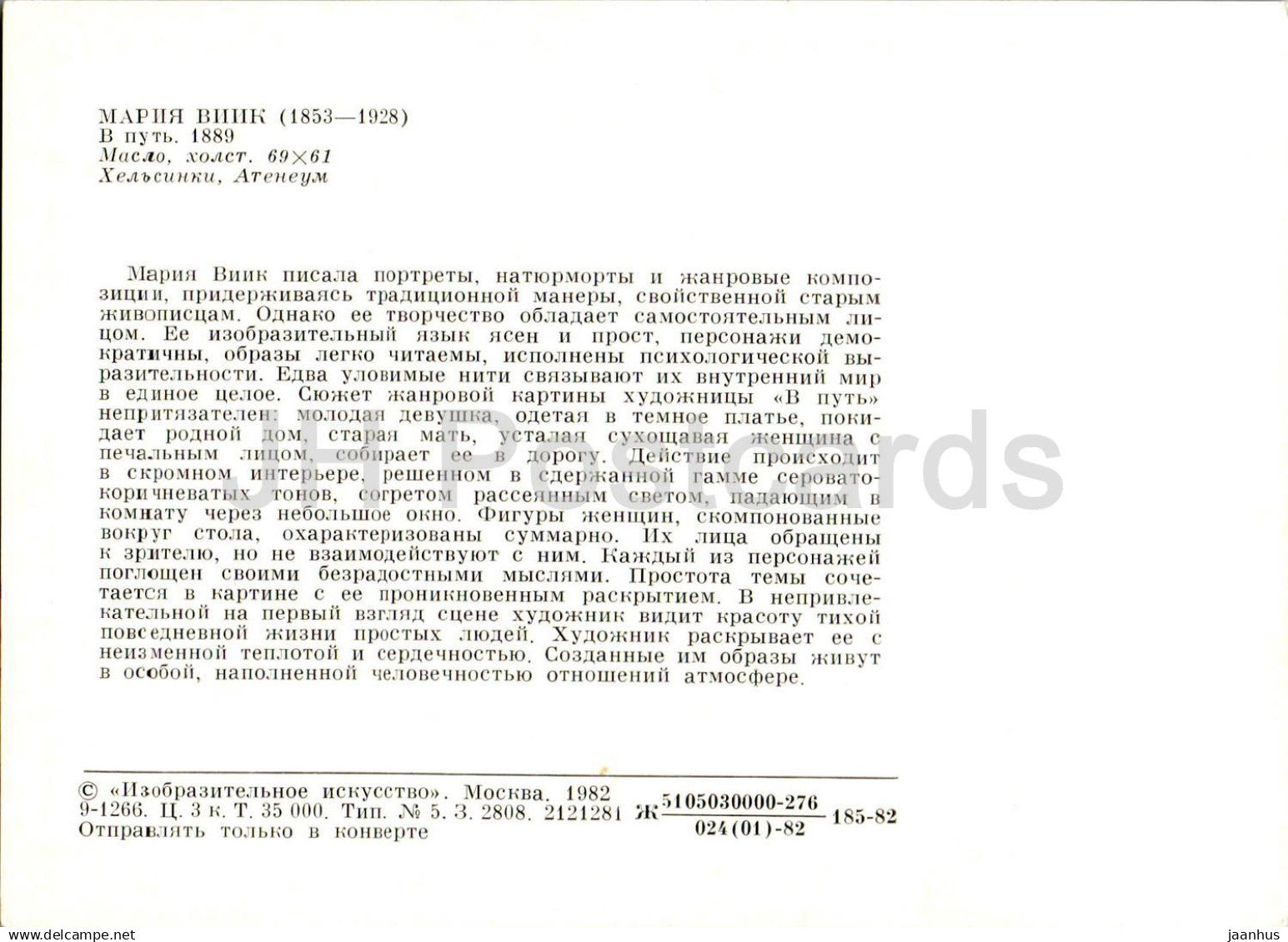 peinture de Maria Wiik - Femme se préparant pour la route - Art finlandais - 1982 - Russie URSS - inutilisé