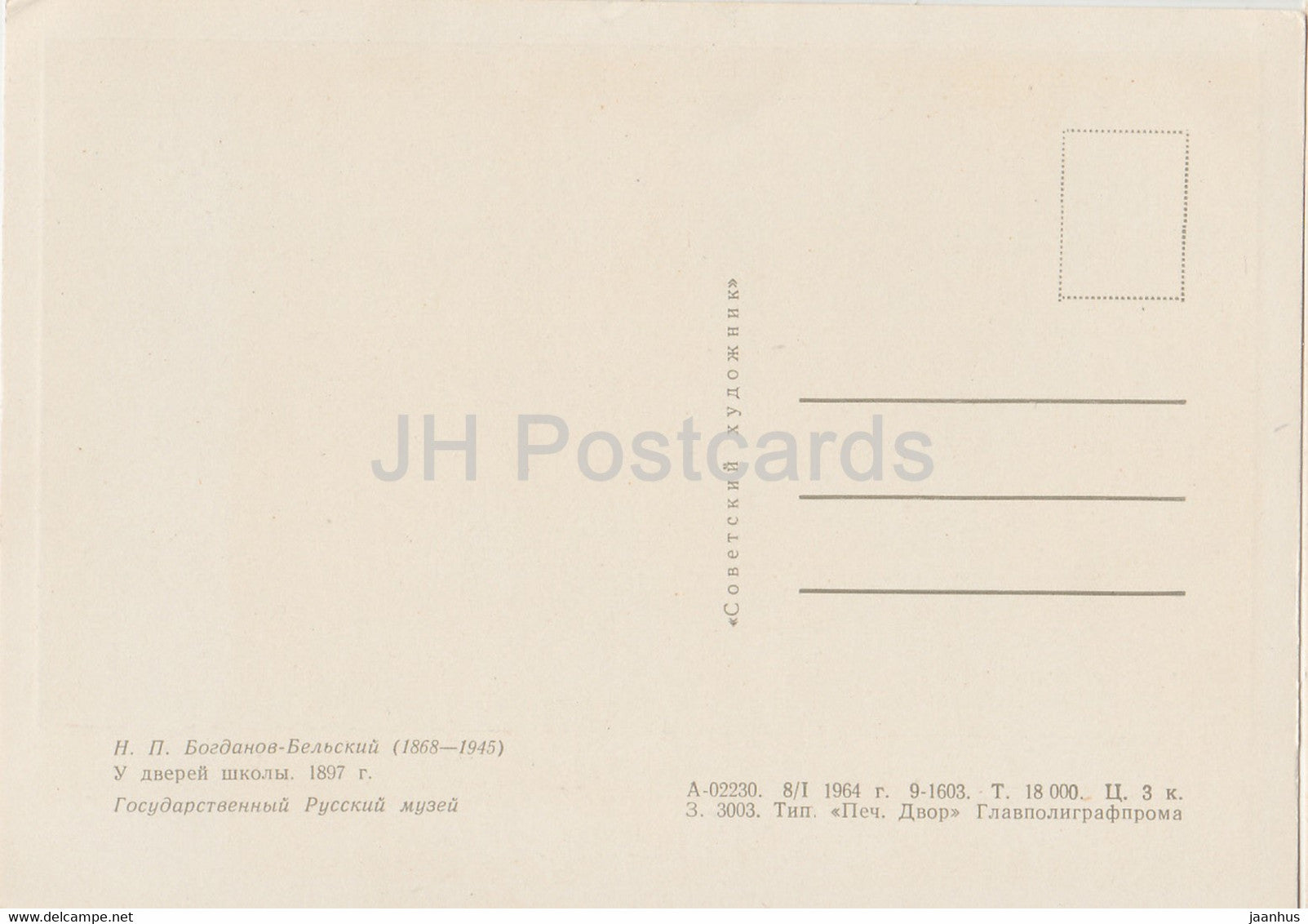 peinture de N Bogdanov Belsky - À la porte de l'école - Art russe - 1964 - Russie URSS - inutilisé