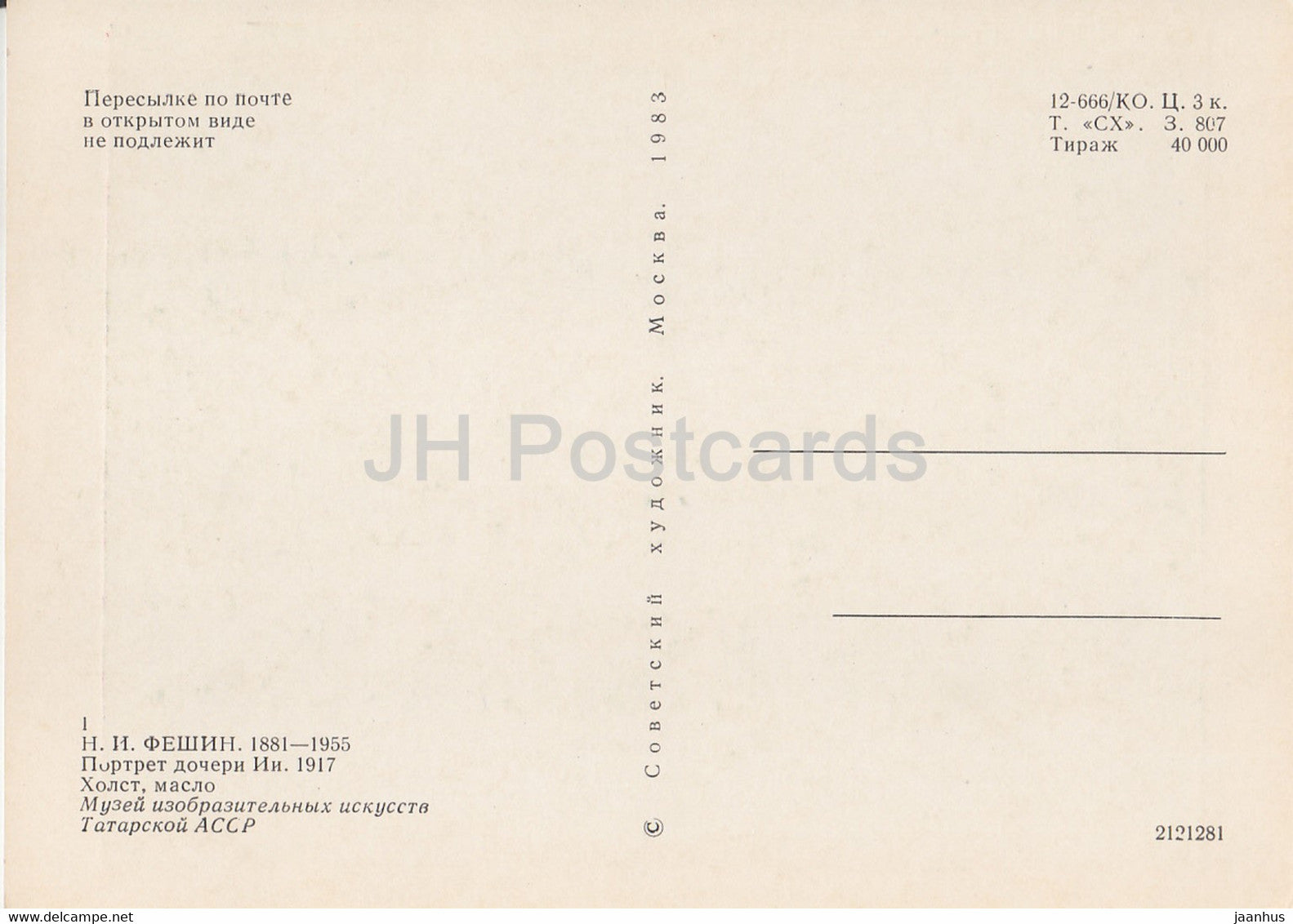 peinture de N. Feshin - premier-né Portrait de fille Ia - fille - Art russe tatare - 1983 - Russie URSS - inutilisé