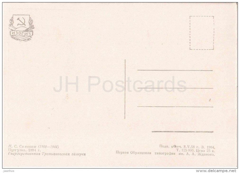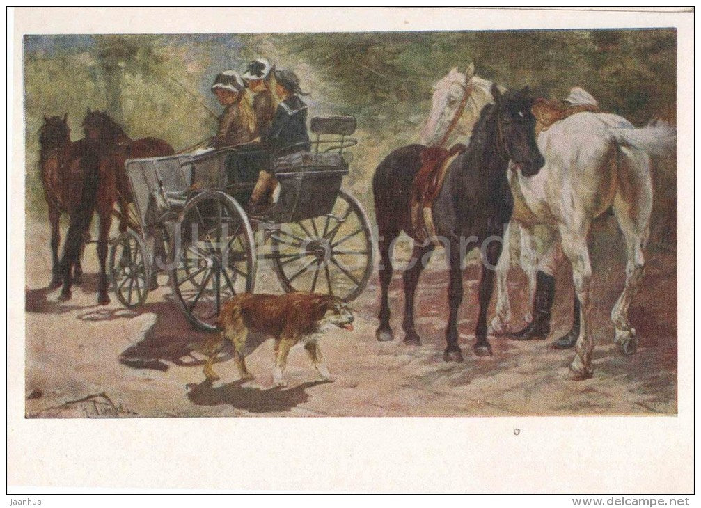 peinture de N. Samokish - Promenade, 1884 - chien - calèche - art russe - inutilisé