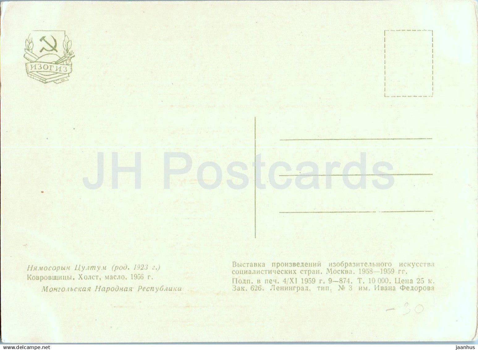 peinture de Nyam Osoryn Tsultem - Tisserands de tapis - femme - art populaire - art mongol - 1959 - Russie URSS - inutilisé