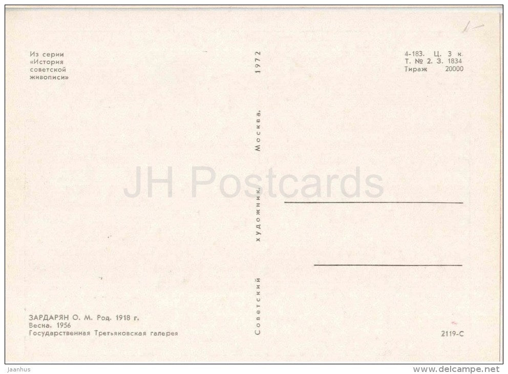 peinture de O. Zardaryan - 1 -Le Printemps, 1956 - femme - montagnes - art arménien - inutilisé