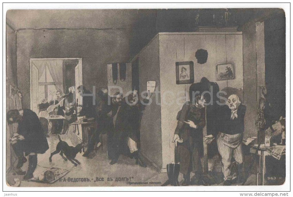 Peinture de P. Fedotov - All in Debt - chien - 963 R - art russe - Russie impériale - inutilisé