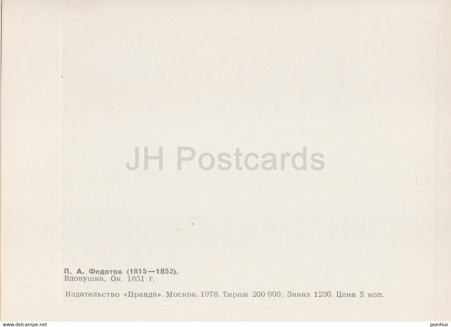peinture de P. Fedotov - Veuve - Art russe - 1978 - Russie URSS - inutilisé