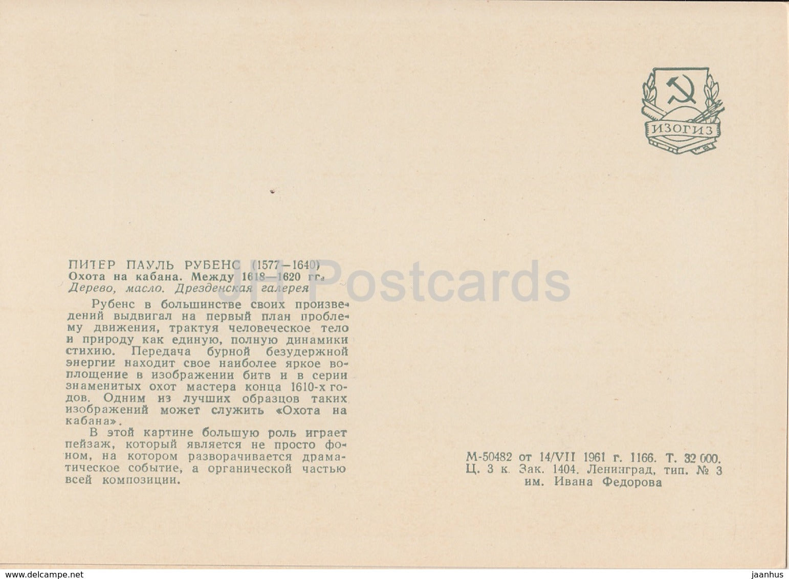 tableau de Peter Paul Rubens - Chasse au sanglier - Art flamand - 1961 - Russie URSS - inutilisé