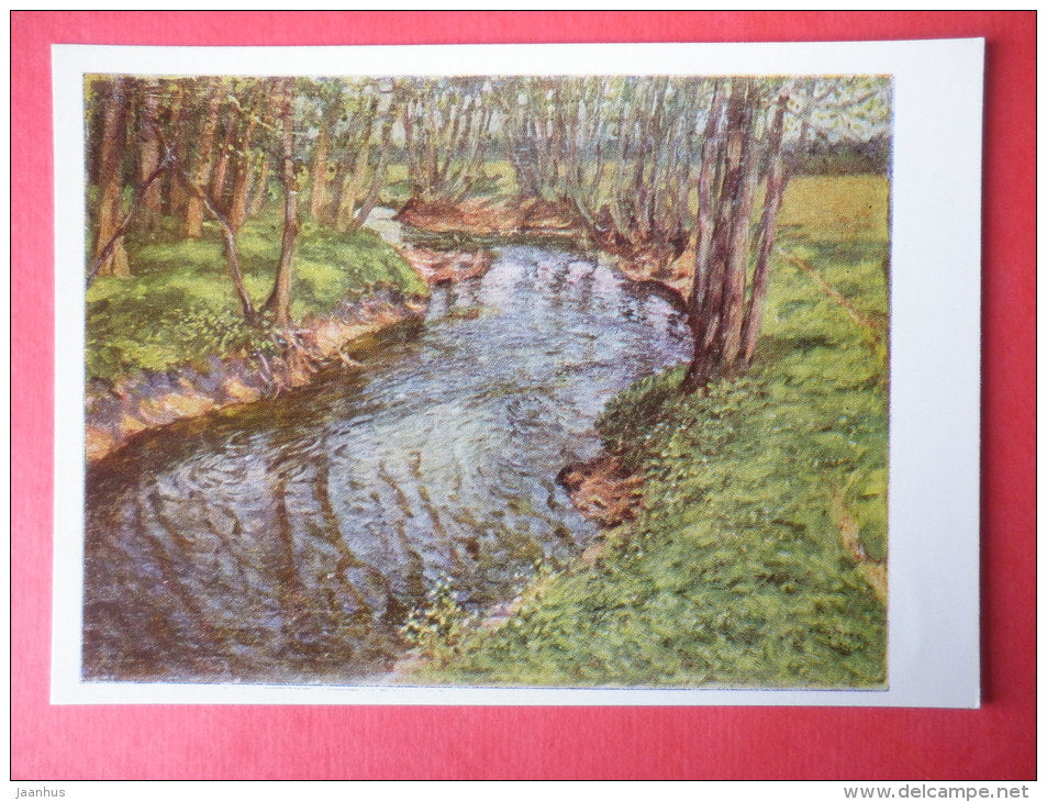 peinture de Petras Kalpokas - Un ruisseau au printemps. 1907 - art lituanien - inutilisé