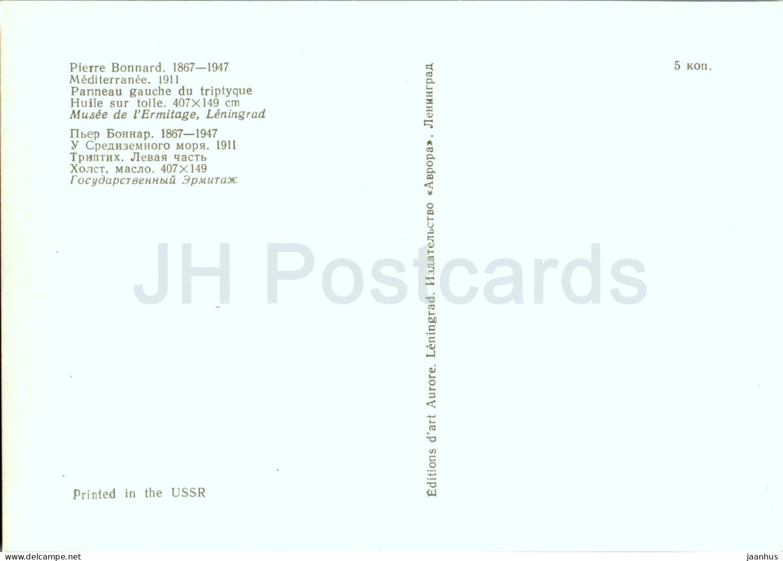 tableau de Pierre Bonnard - Au bord de la Méditerranée Côté gauche du triptyque - Art français - 1977 - Russie URSS - inutilisé