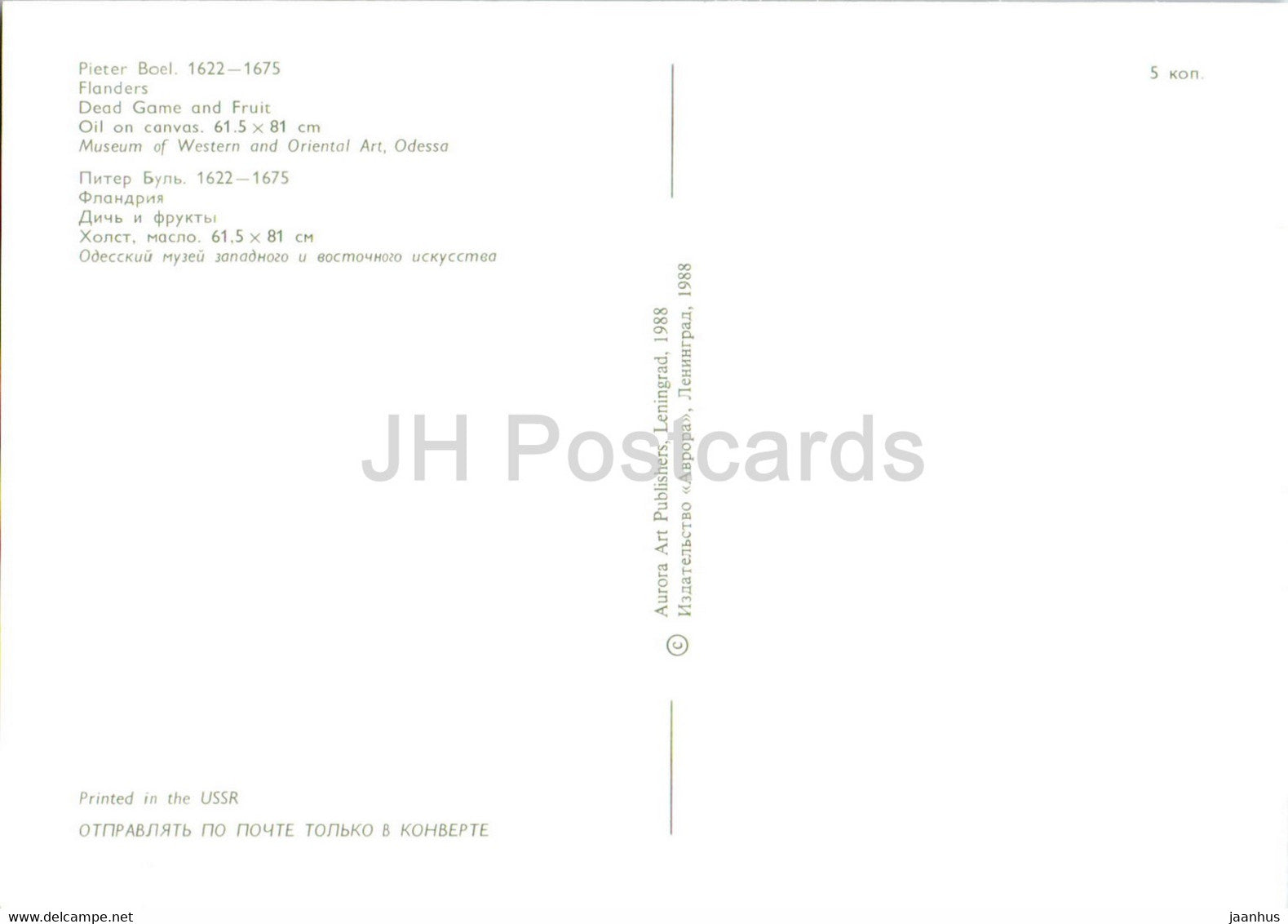 peinture de Pieter Boel - Dead Game and Fruit - oiseaux - raisin - Art flamand - 1988 - Russie URSS - inutilisé