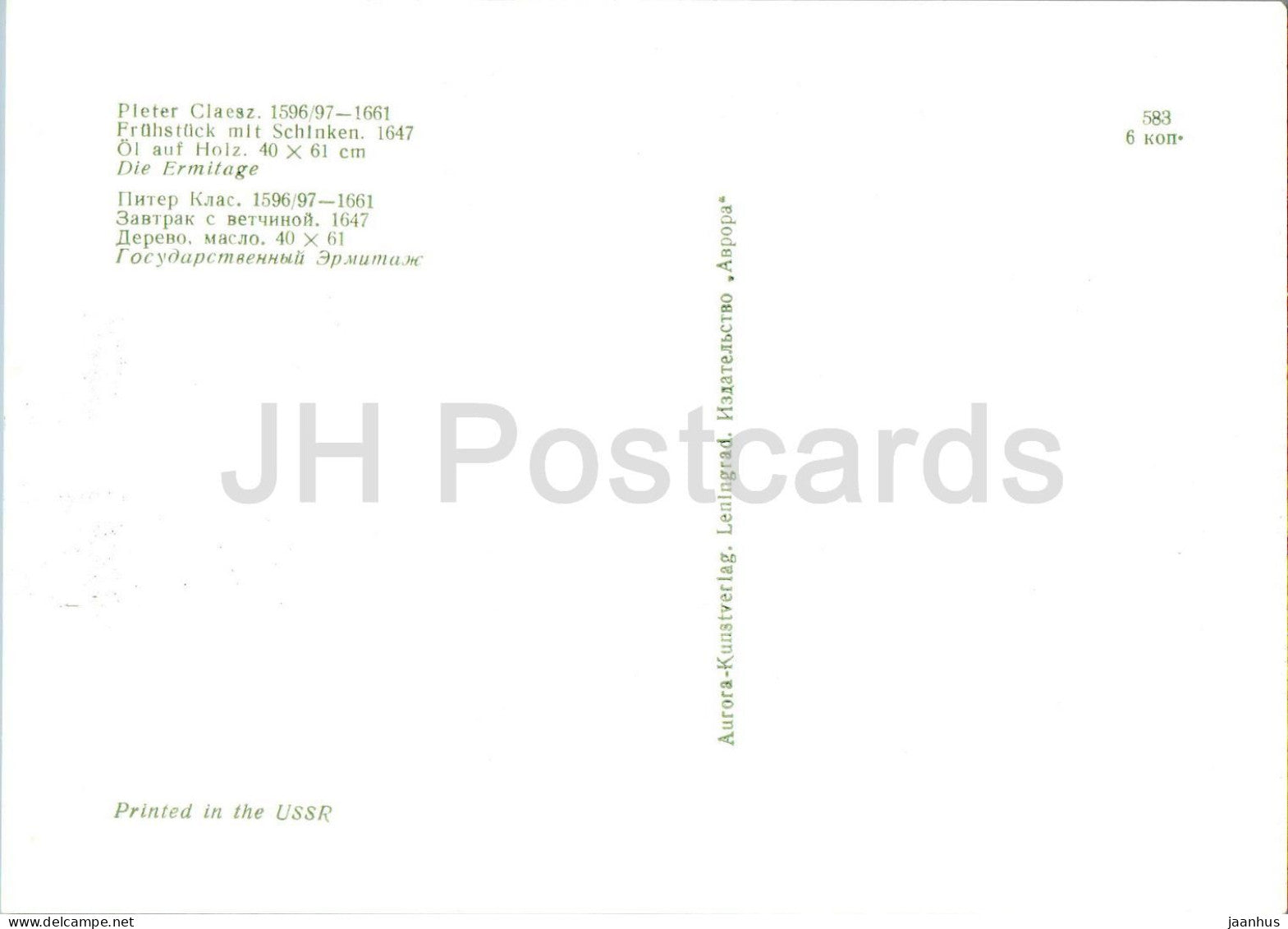 peinture de Pieter Claesz - Petit déjeuner au jambon - pêche - Art néerlandais - 1972 - Russie URSS - inutilisé