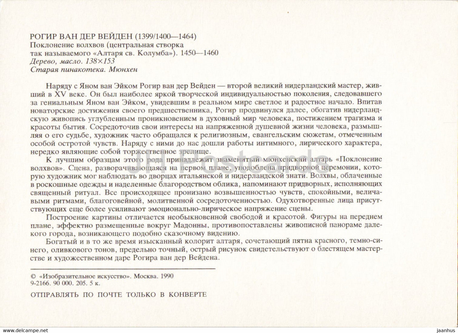 tableau de Rogier van der Weyden - Adoration des Mages - Art flamand - 1990 - Russie URSS - inutilisé