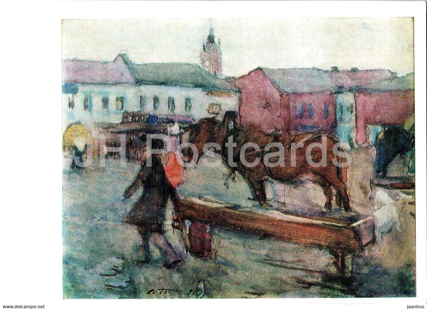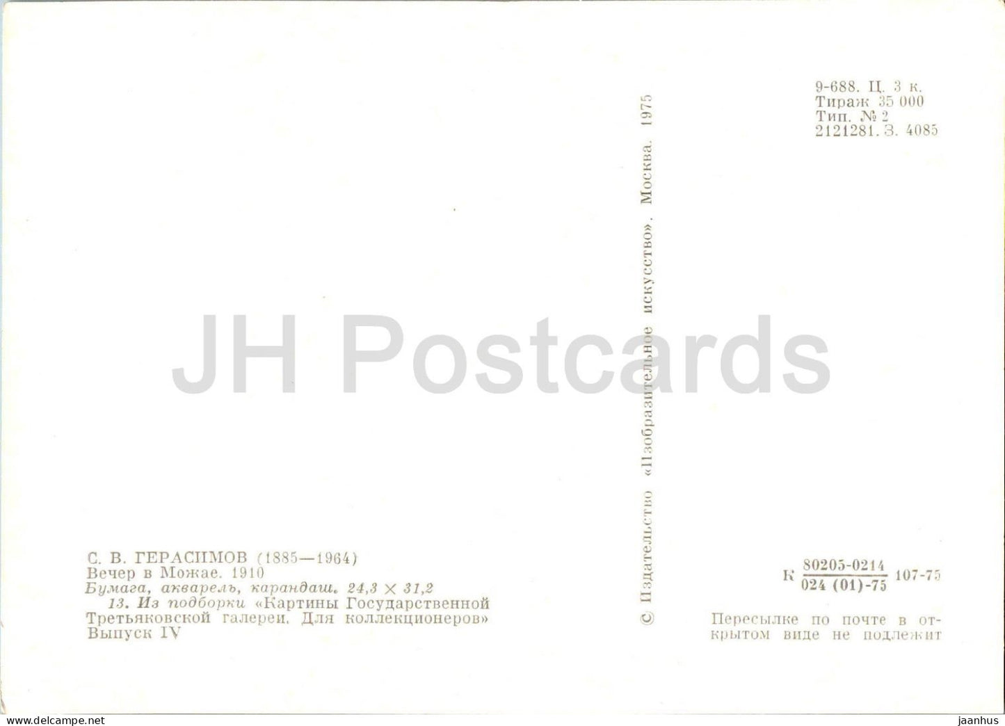 peinture de S. Gerasimov - Soirée à Mozhai - cheval - animaux - Art russe - 1975 - Russie URSS - inutilisé