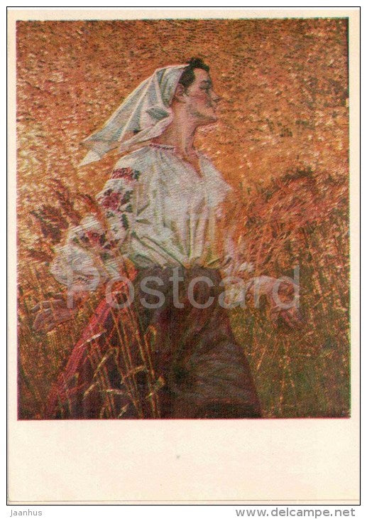 peinture de S. Kirichenko et N. Klein - Harvest, 1957 - femme - art ukrainien - inutilisé