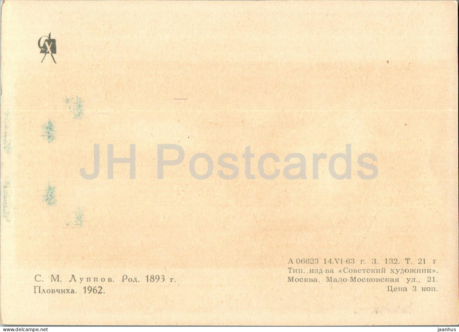 peinture de S. Luppov - Nageuse - femme - natation - sport - Art russe - 1963 - Russie URSS - inutilisé