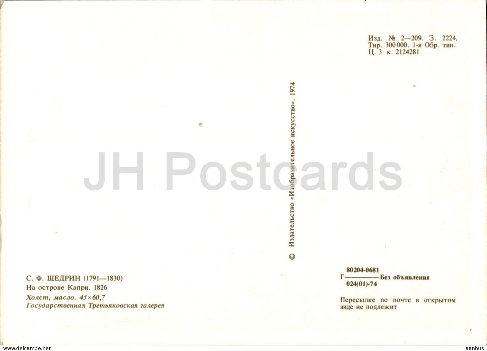 peinture de S. Shchedrin - Île de Capri - bateau - Art russe - 1974 - Russie URSS - inutilisé
