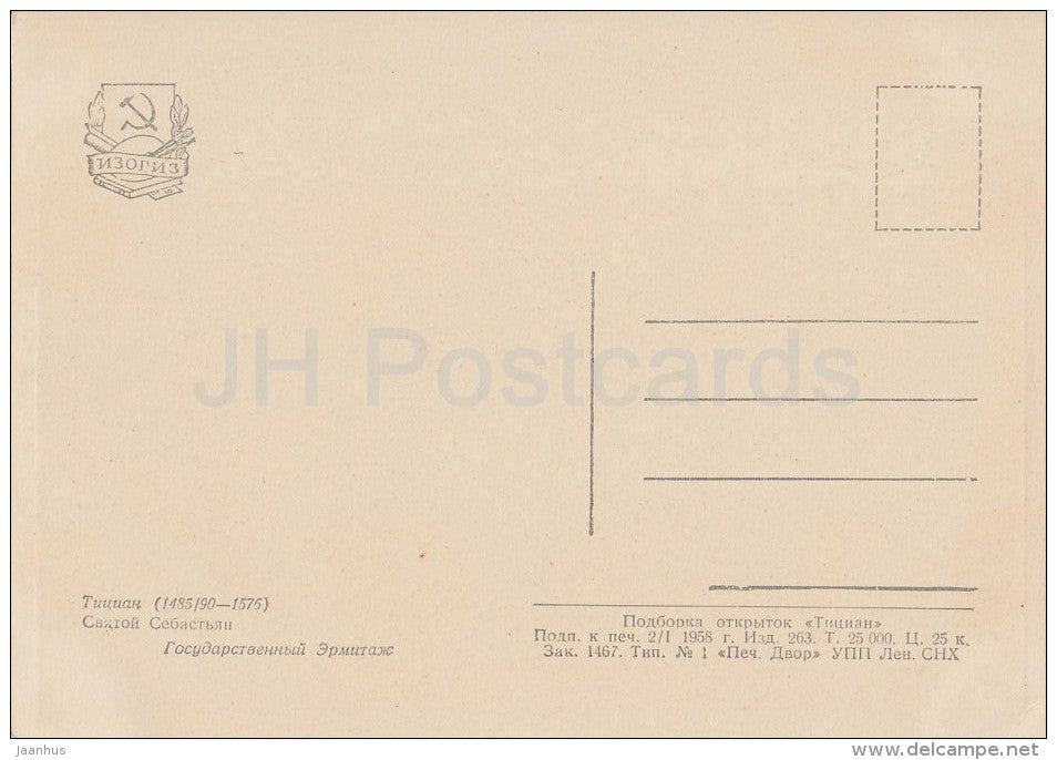 peinture de Titien - Saint Sébastien - Art italien - Russie URSS - 1968 - inutilisé