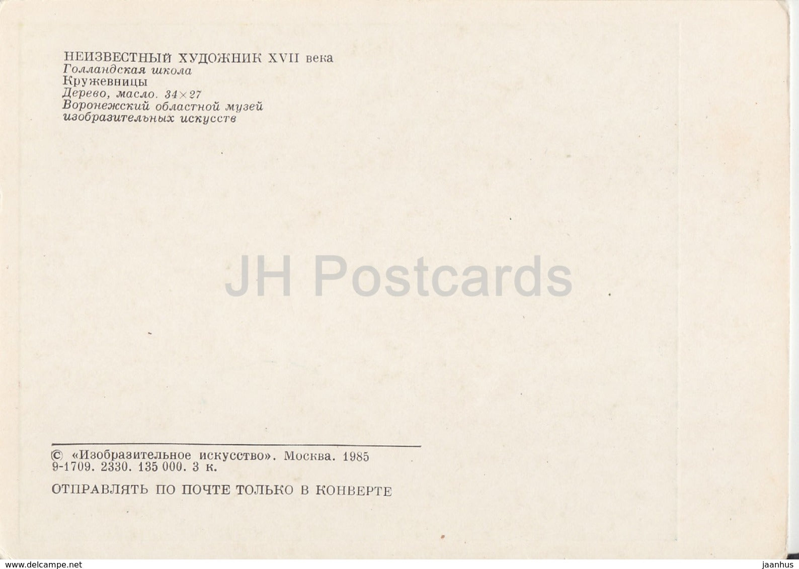 peinture d'un artiste inconnu - Dentellières - Art néerlandais - 1985 - Russie URSS - inutilisé