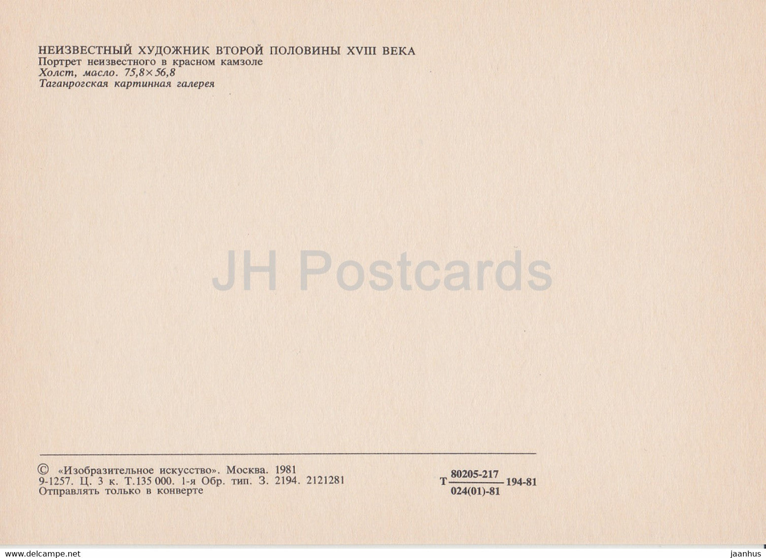 peinture d'un artiste inconnu - Portrait d'un homme inconnu dans une veste rouge - Art russe - 1981 - Russie URSS - inutilisé