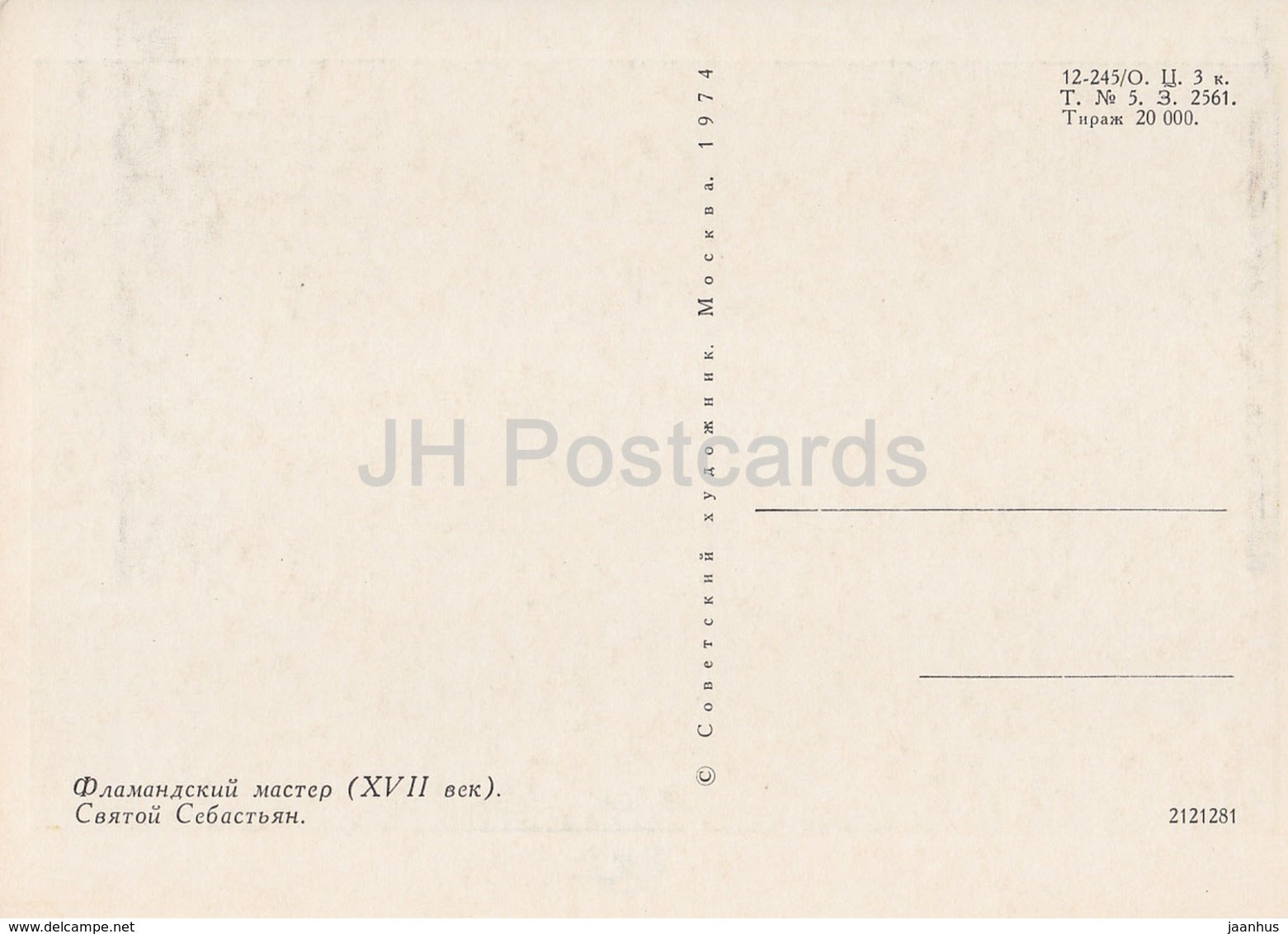 peinture d'un artiste inconnu - Saint-Sébastien - Art flamand - 1974 - Russie URSS - inutilisé