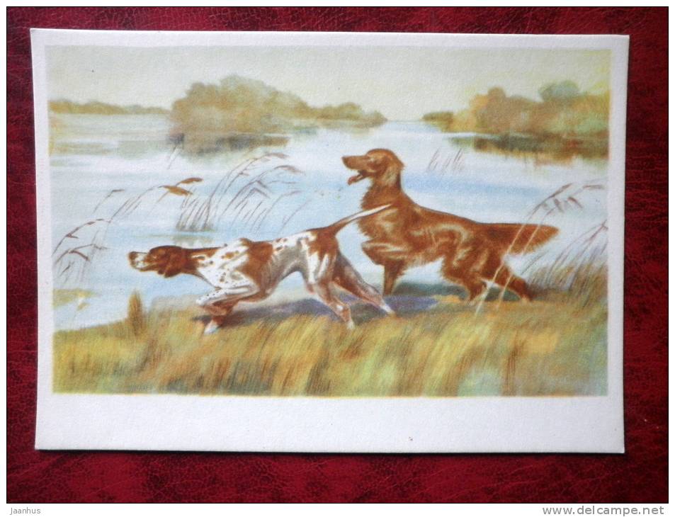 Peinture de VI Kurdov - chiens de chasse aux oiseaux - art russe - inutilisé