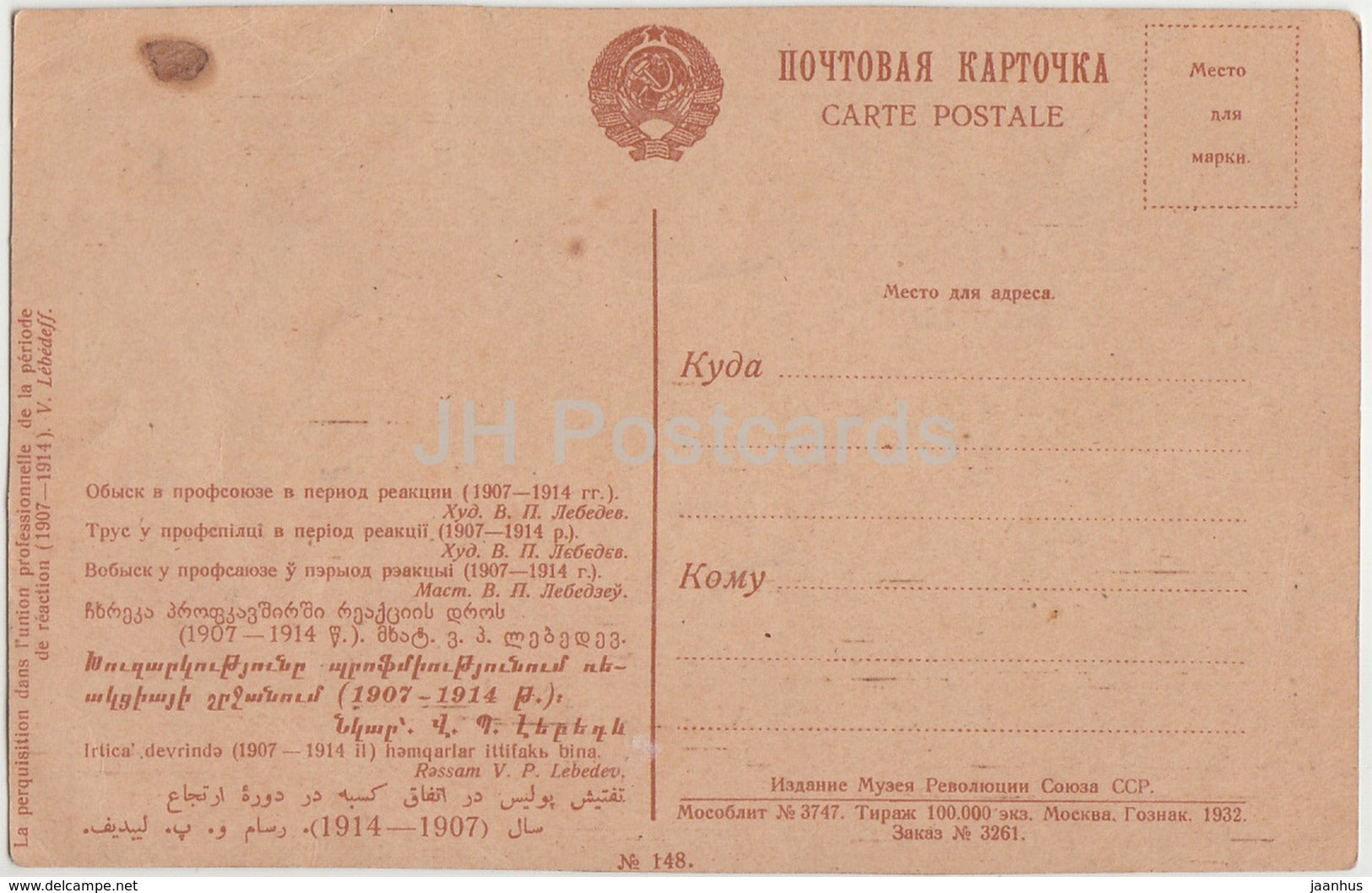 tableau de V. Lebedev - Recherche d'union pendant la période de réaction - 1932 - Art russe - Russie URSS - inutilisé