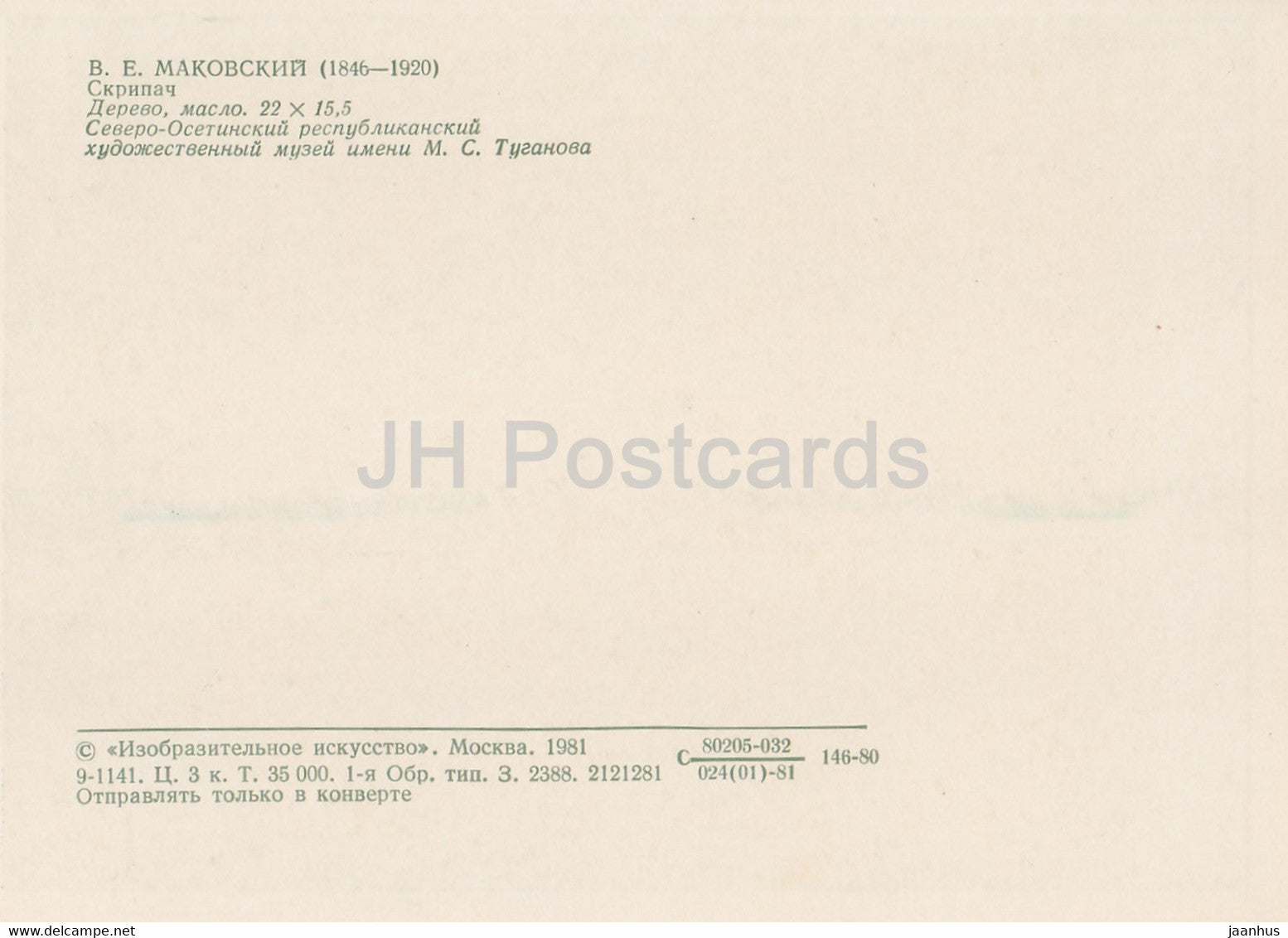 peinture de V. Makovsky - Violoniste - vieil homme - Art russe - 1981 - Russie URSS - inutilisé