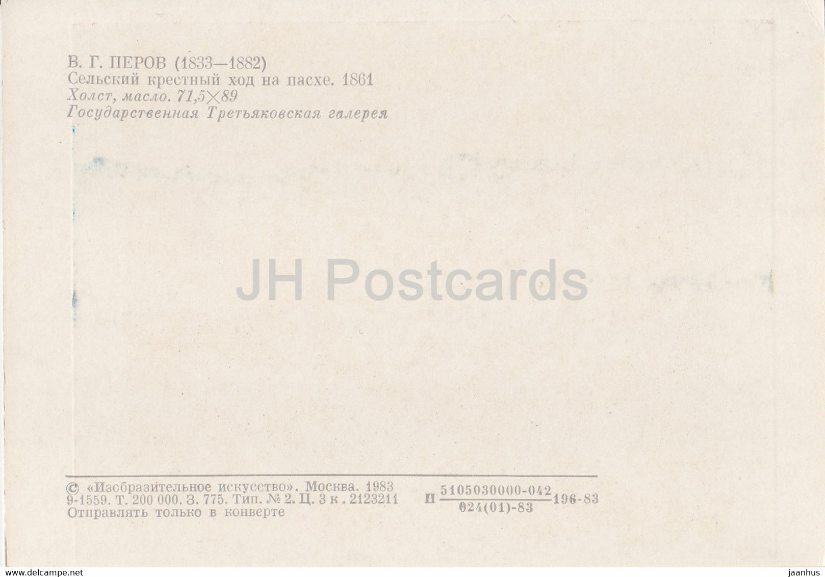 tableau de V. Perov - Procession rurale à Pâques - Art russe - 1983 - Russie URSS - inutilisé