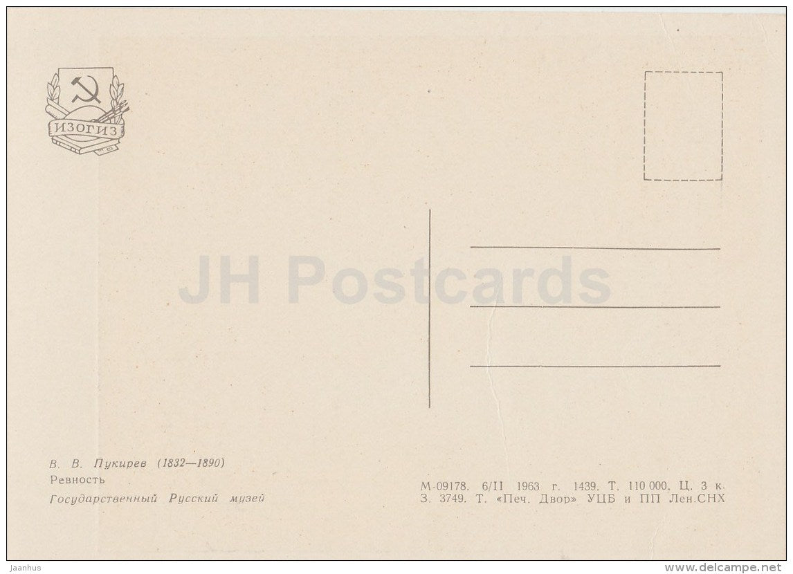 tableau de V. Pukirev - Jalousie - femme - Art russe - 1963 - Russie URSS - inutilisé