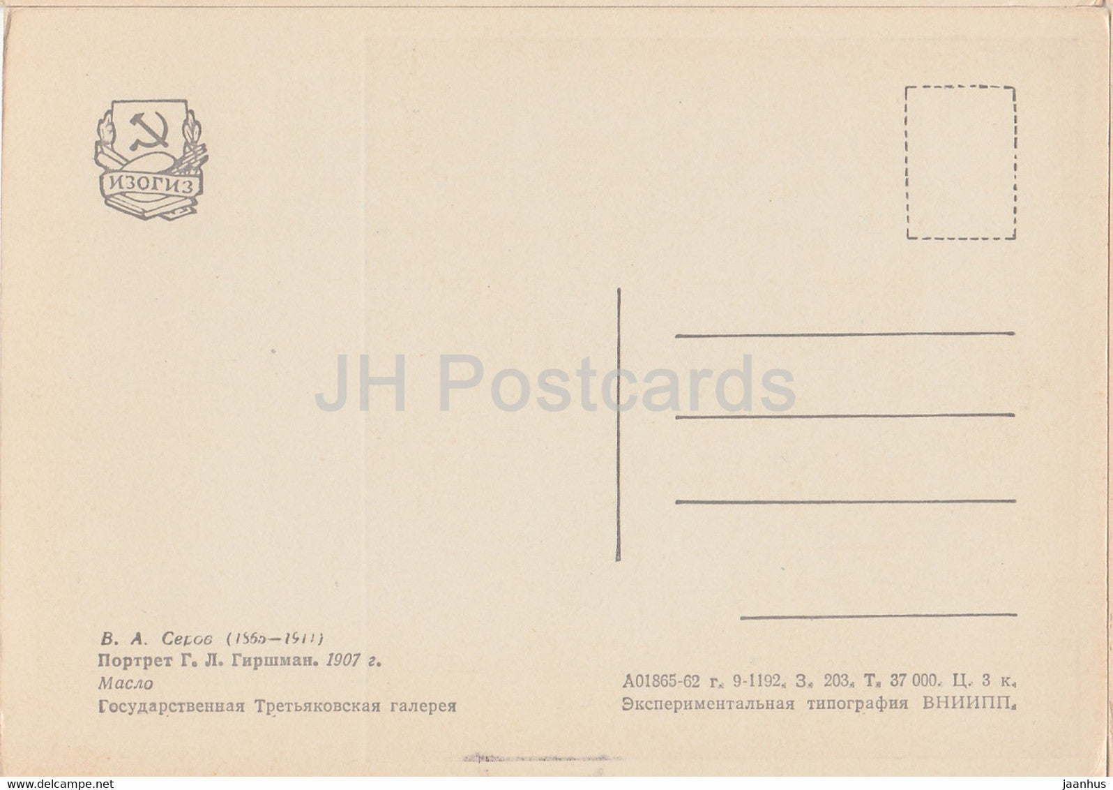 peinture de V. Serov - Portrait d'Henrietta Girshman - Art russe - 1962 - Russie URSS - inutilisé