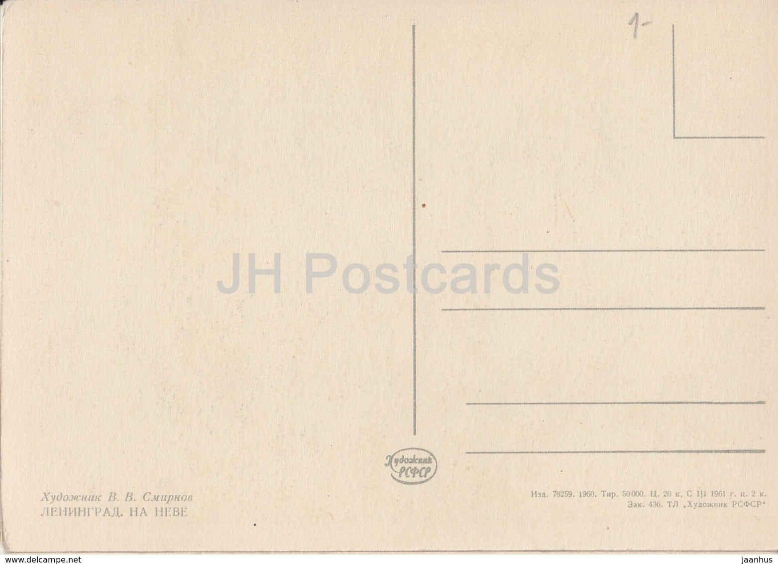 peinture de V. Smirnov - Leningrad - Saint-Pétersbourg - Sur la rivière Neva - Art russe - 1960 - Russie URSS - inutilisé