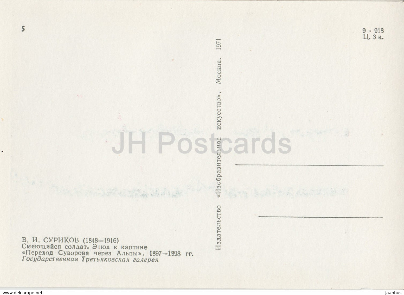 peinture de V. Surikov - Soldat riant - La traversée des Alpes de Souvorov Art russe - 1971 - Russie URSS - inutilisé