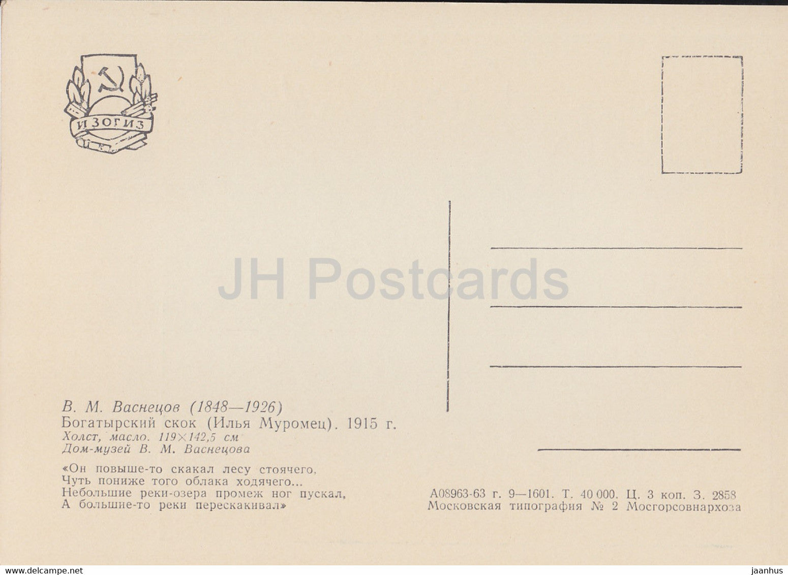 peinture de V. Vasnetsov - Galop héroïque - Ilya Muromets - Conte de fées de chevaux - Art russe - 1963 - Russie URSS - inutilisé