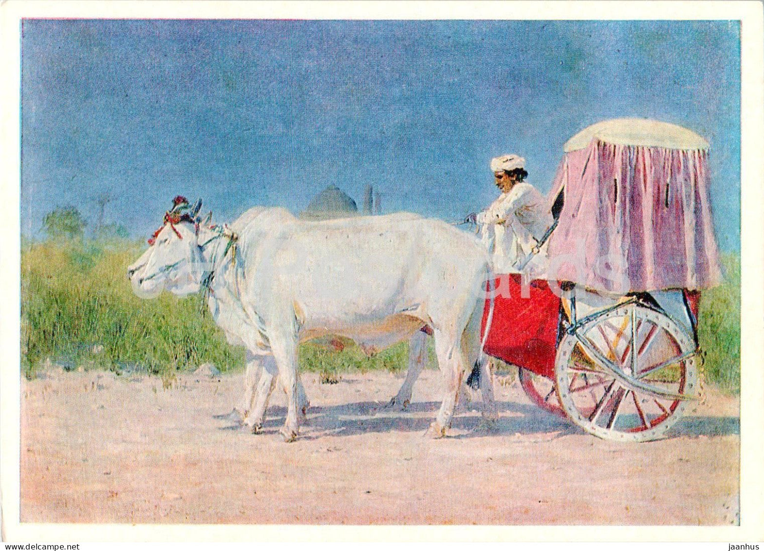 peinture de V. Vereshchagin - Véhicule à Delhi - vache - animaux - Art russe - 1975 - Russie URSS - inutilisé