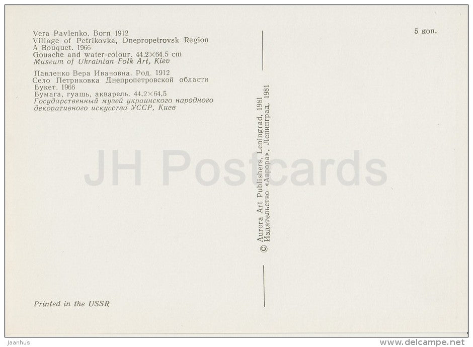 peinture de Vera Pavlenko - Un bouquet, 1966 - fleurs - Art ukrainien - Russie URSS - 1981- inutilisé