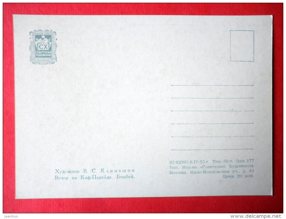 peinture de Viktor Klimashin - Soirée à Cuffe Parade . Bombay - palmiers - art russe - inutilisé