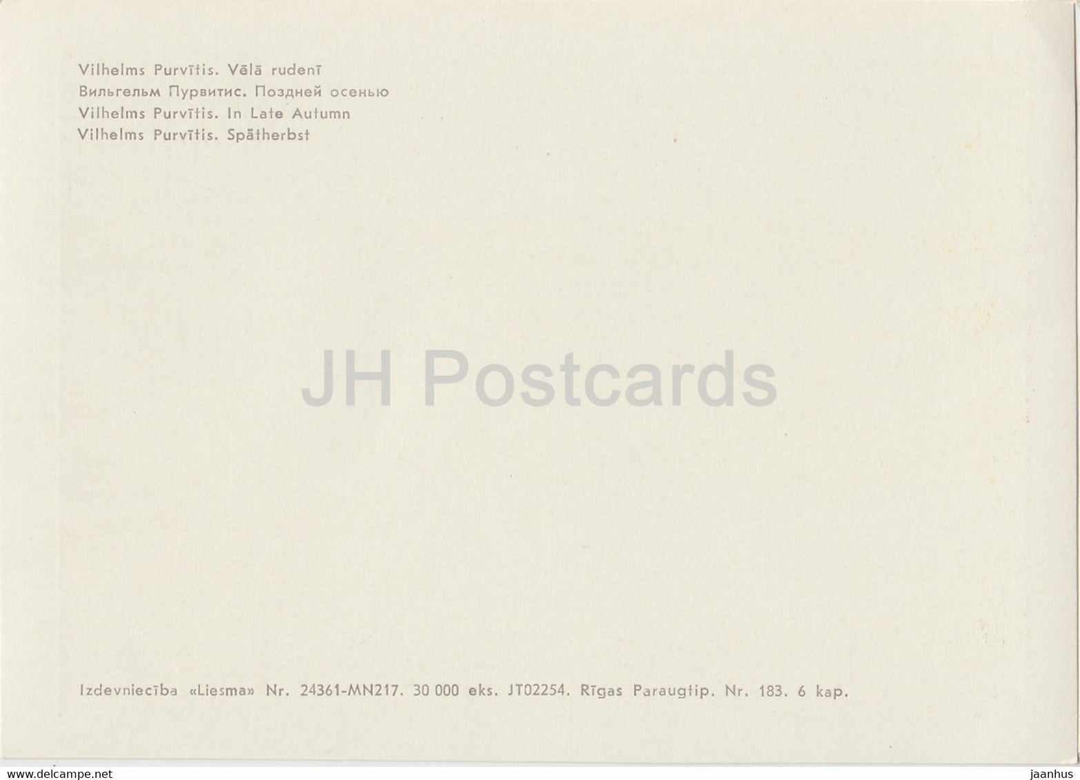 peinture de Vilhelms Purvitis - In Late Autumn - Art letton - Lettonie URSS - inutilisé