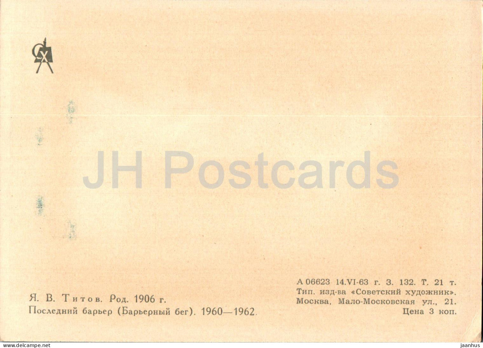 peinture de Y. Titov - The Last Hurdle - course de haies - sport - art russe - 1963 - Russie URSS - inutilisé
