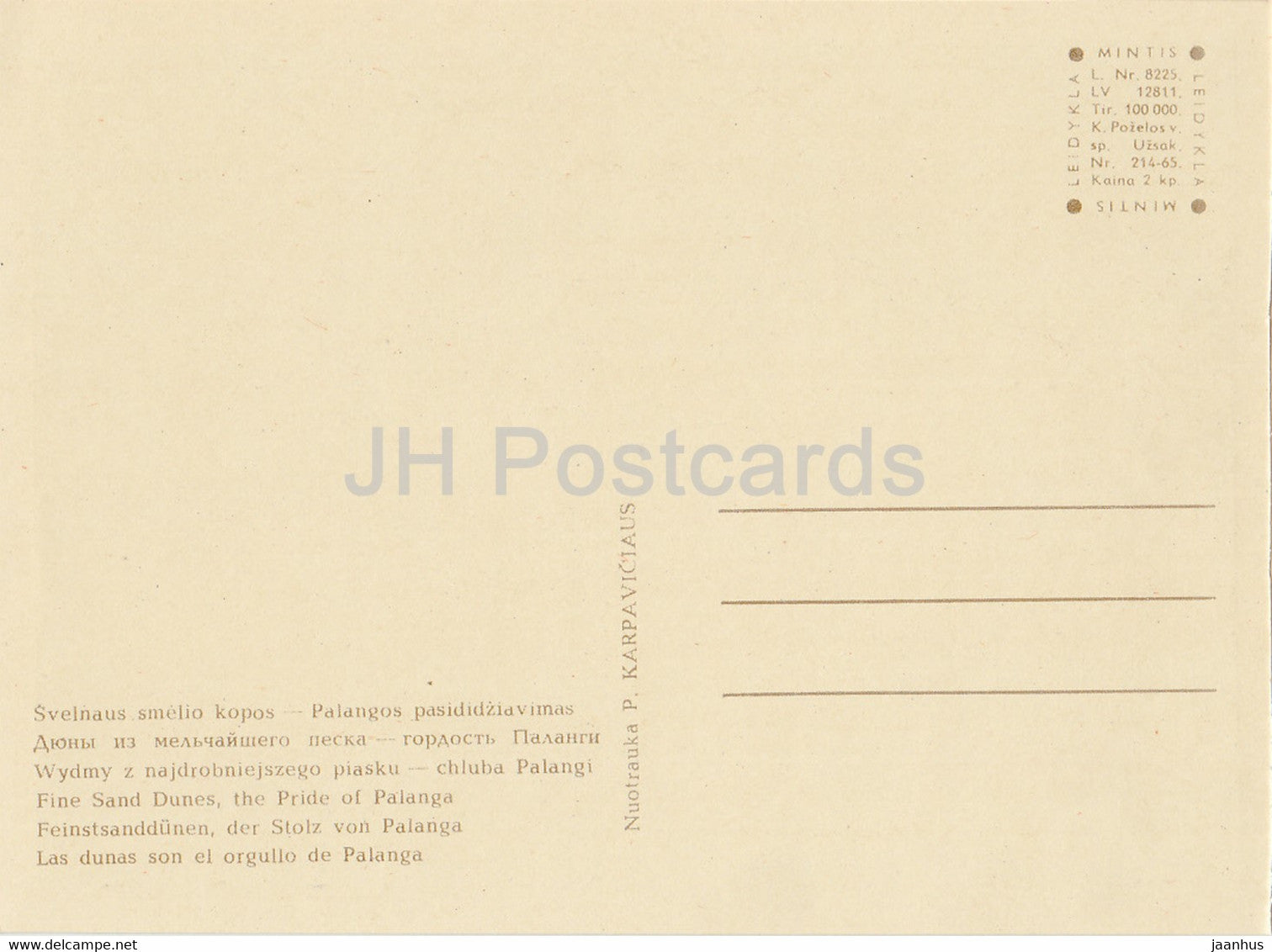 Palanga - Sable fin et dunes The Pride of Palanga - 1 - Lituanie URSS - inutilisé