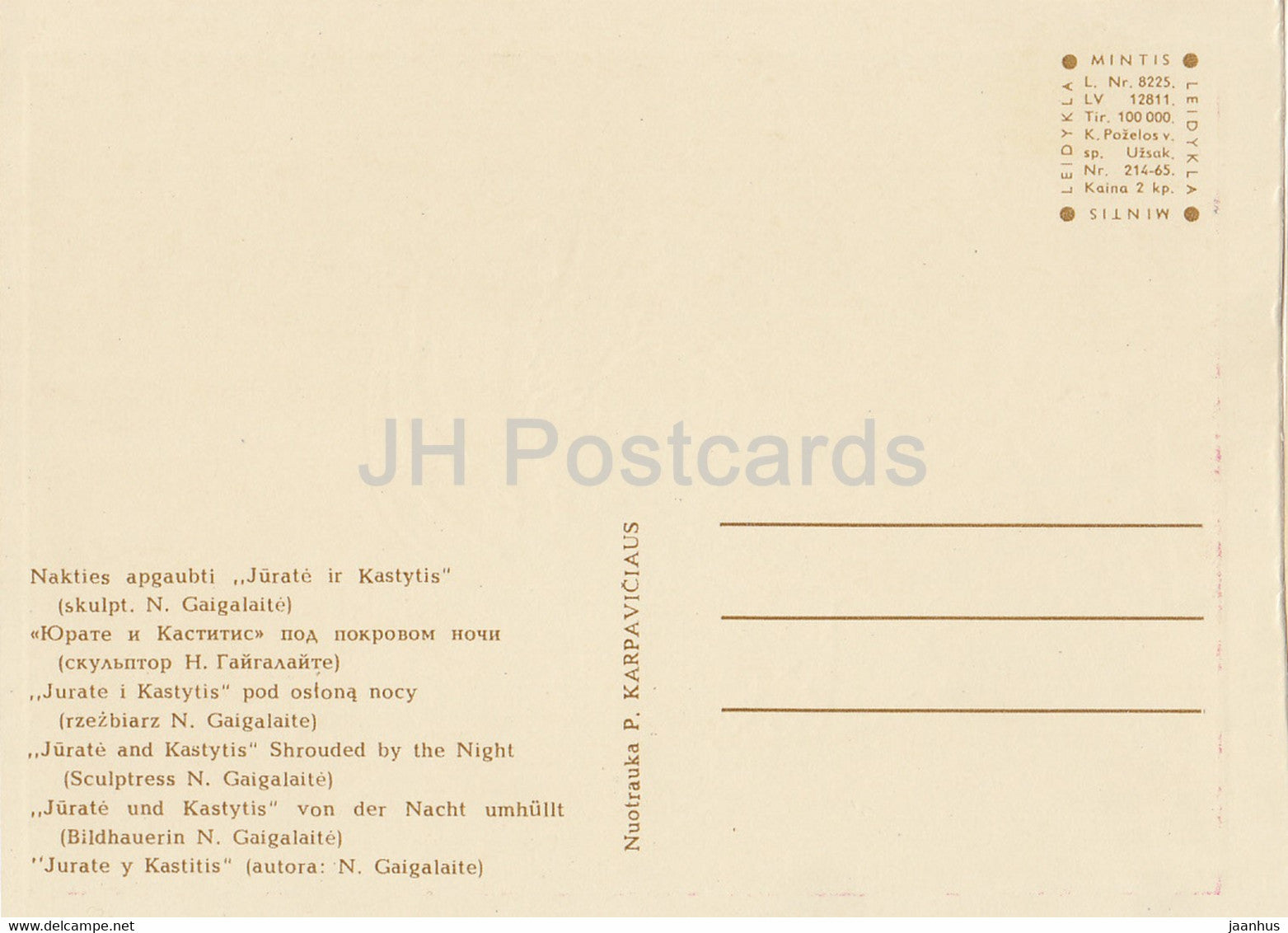 Palanga - Jurate et Kastytis Shrouded by the Night - sculpture - 1 - Lituanie URSS - inutilisé