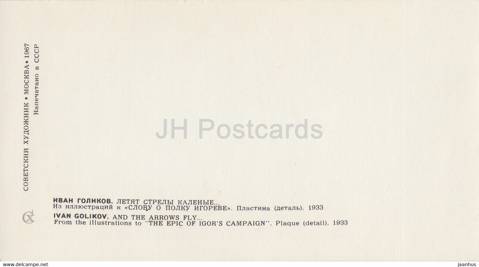 Miniature Palekh - Et les flèches volent - L'épopée de la campagne d'Igor - 1 - 1967 - Russie URSS - inutilisé