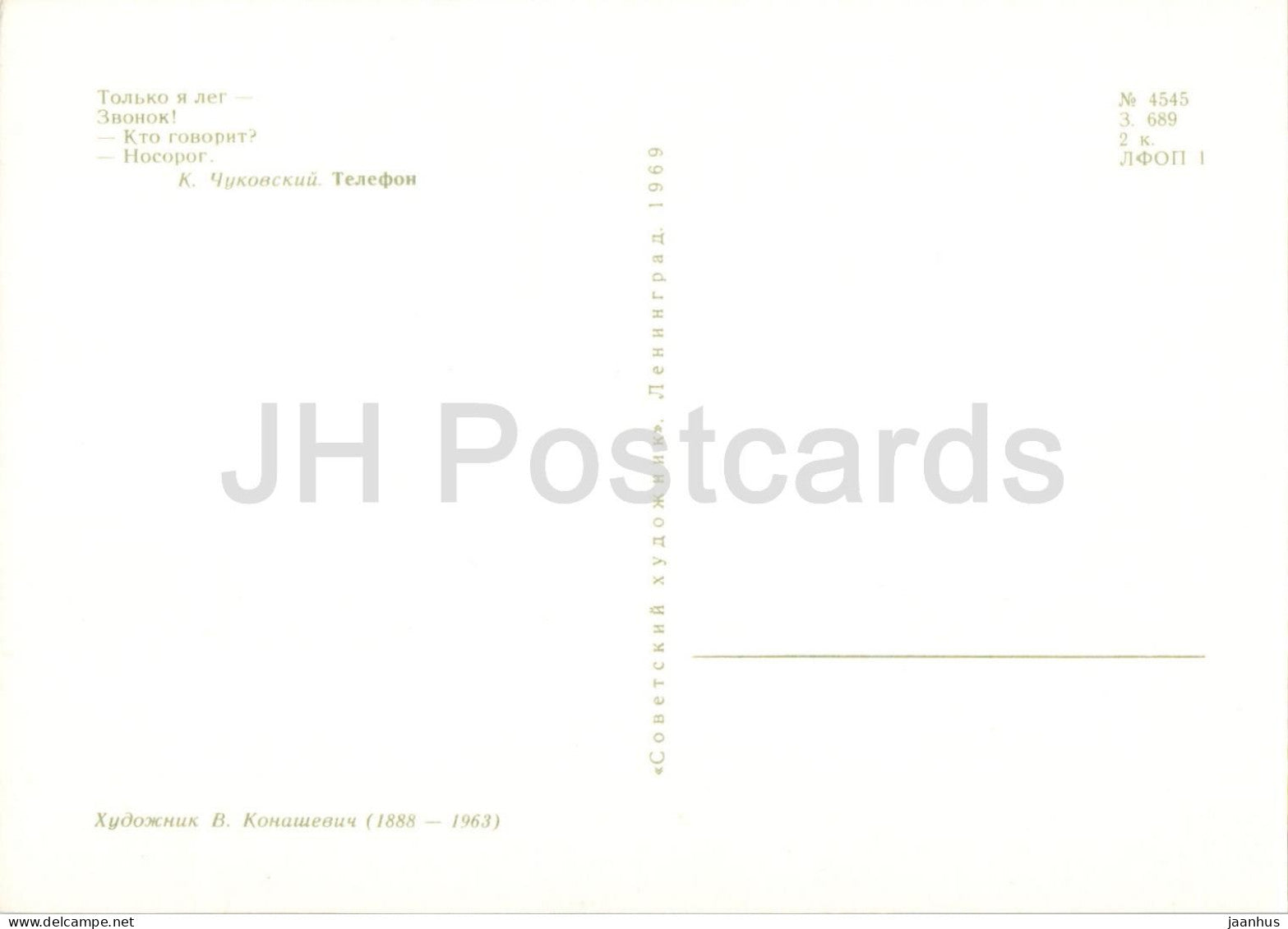 palmier - rhinocéros - Téléphone - Conte de fées de Tchoukovski - illustration - 1969 - Russie URSS - non utilisé