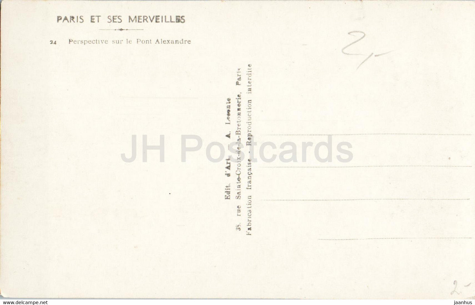 Paris et ses Merveilles - Perspective sur le Pont Alexandre - pont - 24 - carte postale ancienne - France - inutilisée