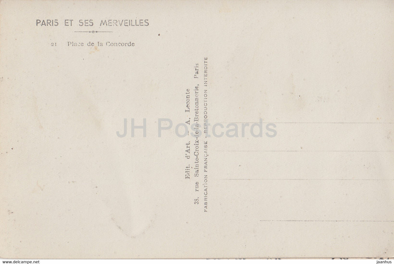 Paris et ses Merveilles - Place de la Concorde - carte postale ancienne - France - inutilisée