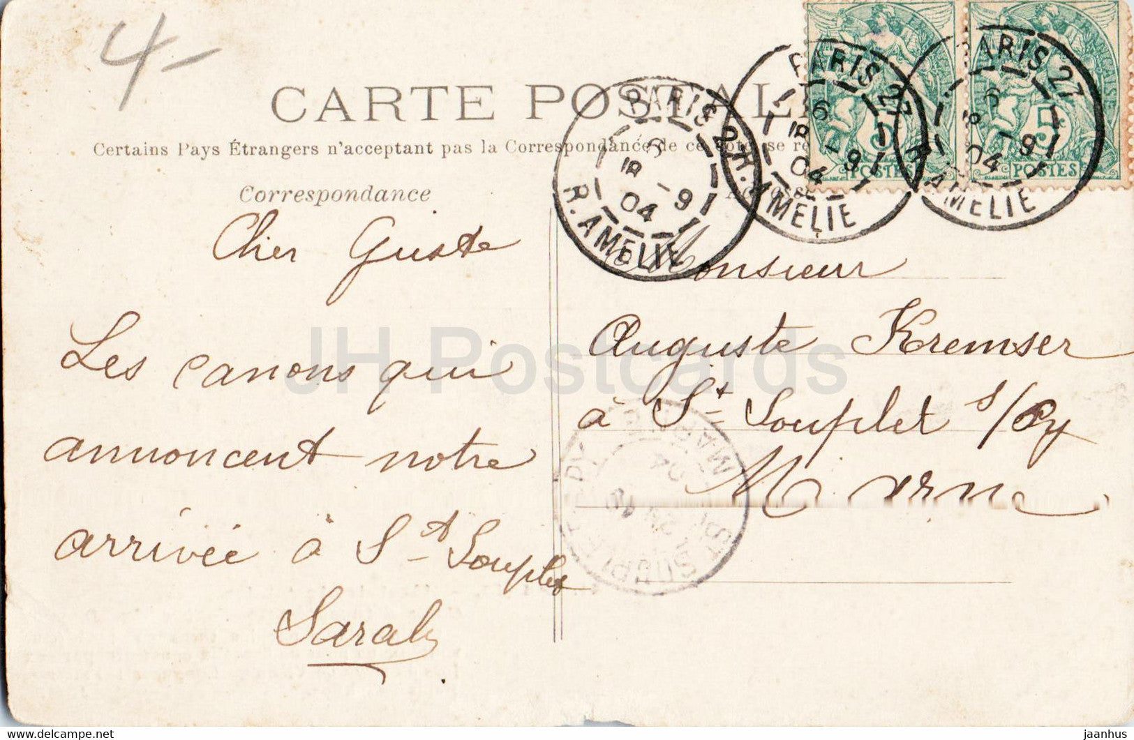 Paris - Hôtel des Invalides - canon - militaire - 41 - carte postale ancienne - 1904 - France - utilisé