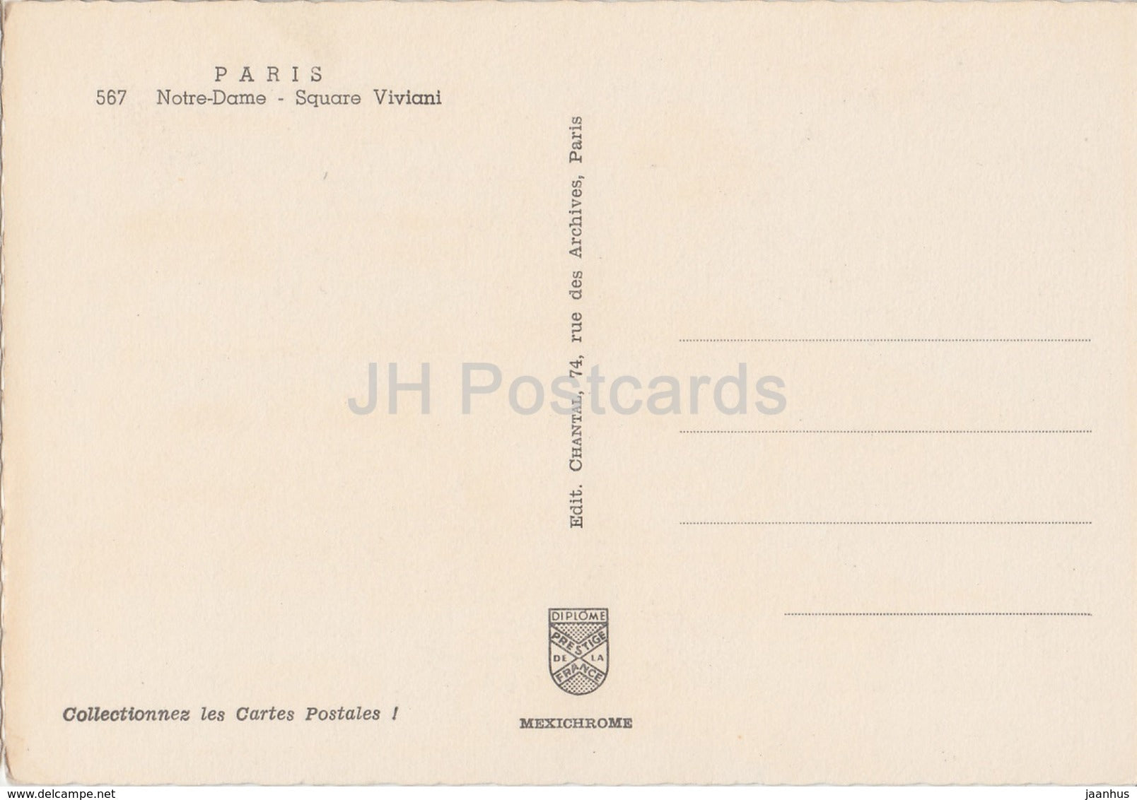 Paris - Notre Dame - Square Viviani - 567 - France - cartes postales anciennes - inutilisées