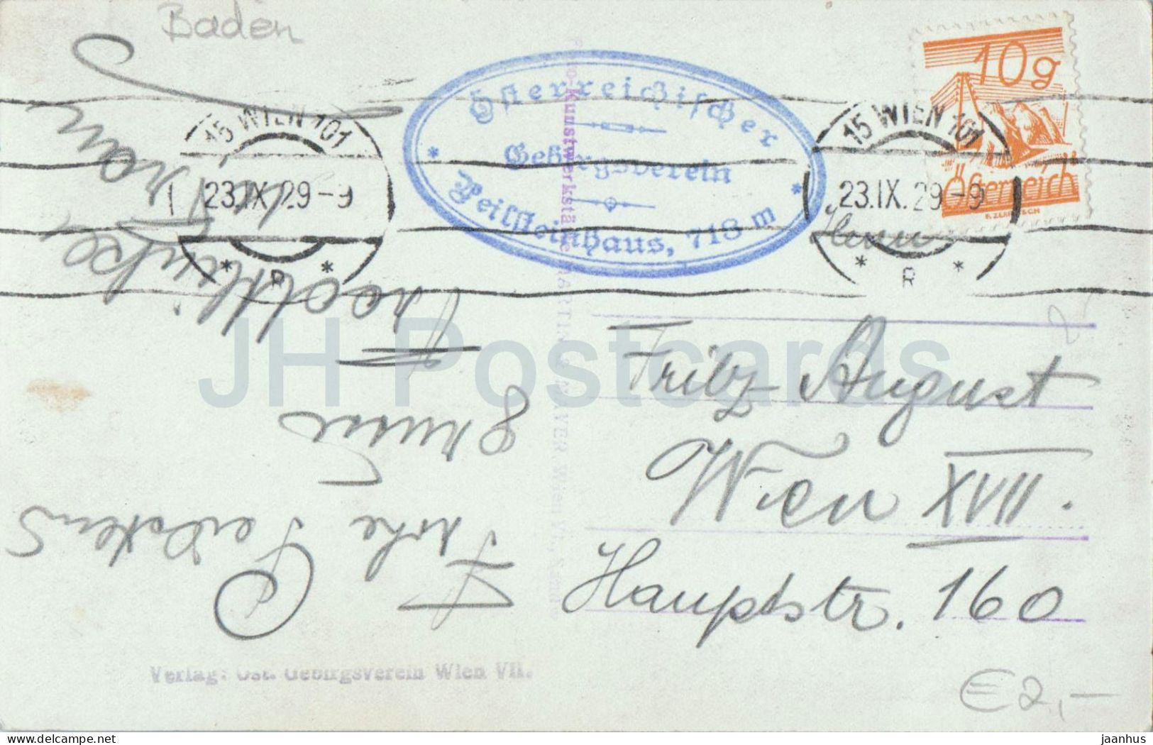 Peilstein - Teufelsbadstubenhohle - randonneurs - vue sur la montagne - silhouette - 1102 - carte postale ancienne - 1929 - Autriche - utilisée