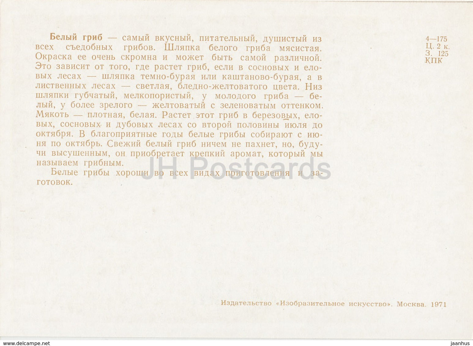 Penny Bun - champignons - illustration - 1971 - Russie URSS - inutilisé