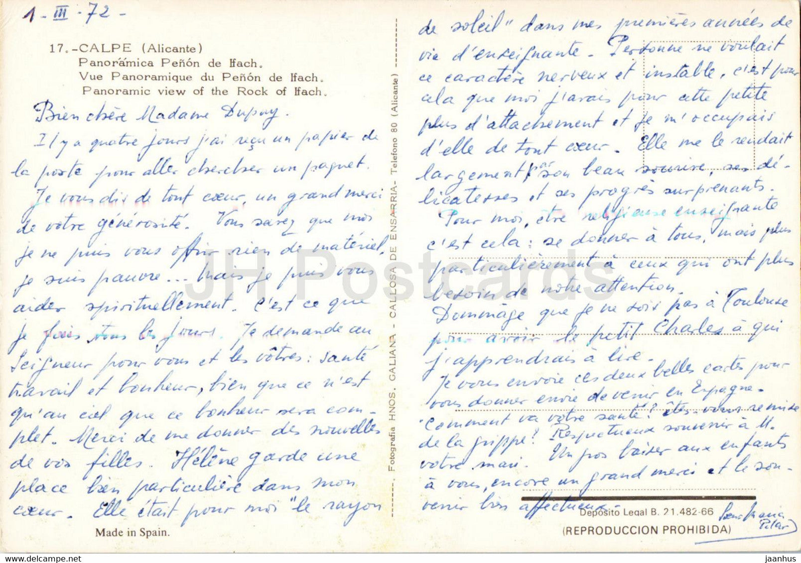 Penon de Ifach - Calpe - Panoramica - vue - 17 - 1972 - Espagne - occasion